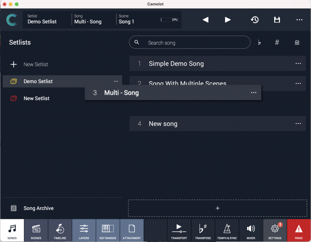 Camelot Pro is the application every musician with a complex live setup dreams of. The idea behind Camelot is to make the lives of every stage musician easier and more convenient so that their time is better spent focusing on the music, rather than focusing on technical details.